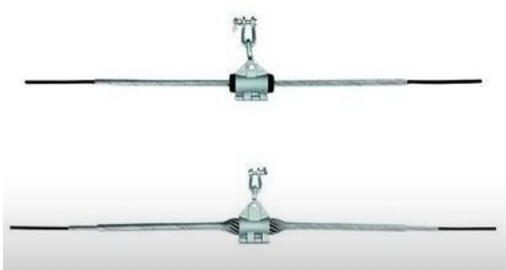 Pendant que les brides de suspension sont utilisées à ACSR, le conducteur peut être enroulé par les bandes en aluminium ou des tiges préformées d'armure pour se protéger protégeant ces robinets ou les tiges sont incluses en diamètre de conducteur approprié.